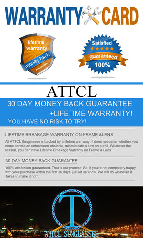 ATTCL sunglasses offer 100% UVA/UVB protection from the damaging rays of the sun. ATTCL sunglasses bring you a variety of designs to evoke the springtime and summer spirit. Outdoors and socializing on a spring break, at a happy hour, at the beach, partying or meeting out at the corner cafe;