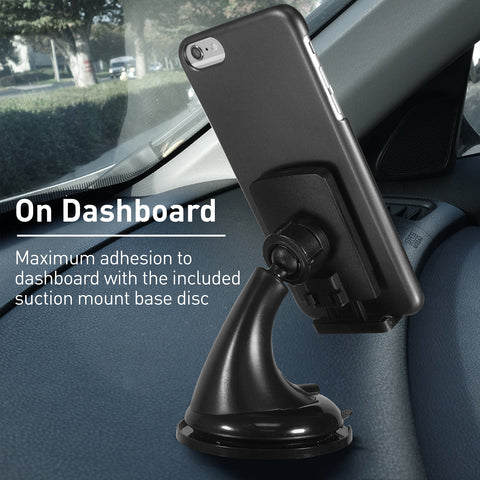 • USE ON DASHBOARD OR WINDSHIELD: Suction cup gel pad with lever securely mounts on windshield or dashboard with no residue left behind. Included is a FREE dashboard mounting disc.