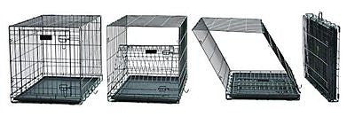 Folding metal dog crate folds flat for convenient storage, travel & portabilitiy