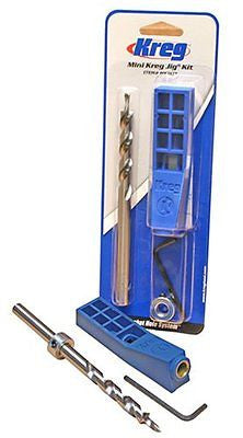 The Kreg Mini Jig is designed without an alignment fence which allows it to be clamped to virtually any angle or orientation to the edge of a workpiece. Simply clamp the guide in place and use the included step drill bit and stop collar to produce perfect pocket holes. Kit includes Mini Jig, HSS 3/8" diameter step drill, stop collar, and hex key. It is the pocket-hole solution for cabinetmaking.