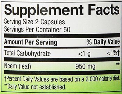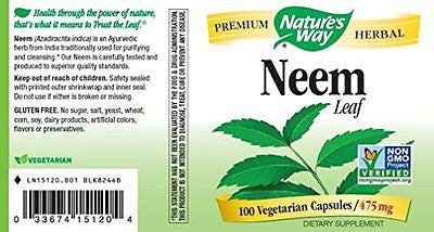 New Nature's Way Neem Leaves Premium Herbal 475 mg 100 Capsules psoriasis acne