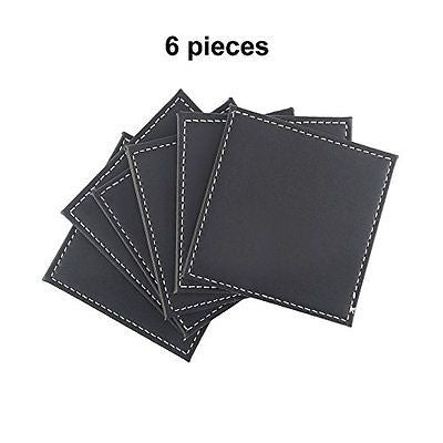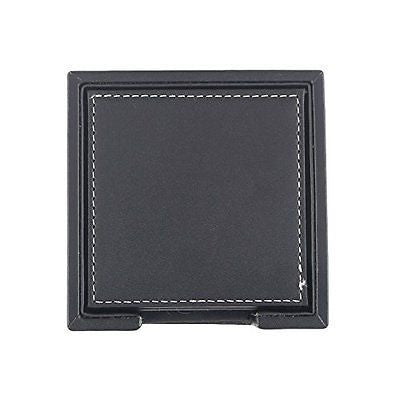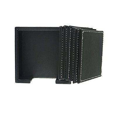 PINMEI Black Leather Drink Coasters with Holder Set of 6, Square, 10x10CM3.94in