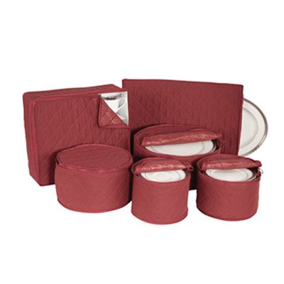 Is there a danger of your delicate and expensive chinaware chipping when stacked one on top of the other? Then guard them from now on in these specially designed, crimson colored China Plate Storage Cases! Each bag holds dishes and comes with small thin cushioned dividers to protect the dishes from cracking or chipping. The lid opens from top for easy loading and removing of the dishes. Fasten the lid using the self correcting zipper made of nylon, to keep away the dust and moisture. Sizes: - Saucer Plate Case: 7" diameter - Dessert Plate Case: 8" diameter - Salad Plate Case: 9 1/2" diameter - Dinner Plate Case: 12" diameter - Cup chest: 13 1/2" x 11 1/2" x 4" - Platter case: 12" x 8"