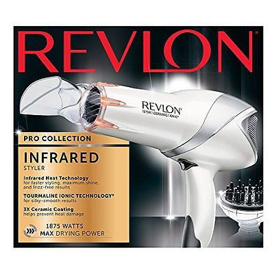 Revlon Laser Brilliance 1875W Infrared Heat Hair Dryer, White and Grey, 32 Ounce
