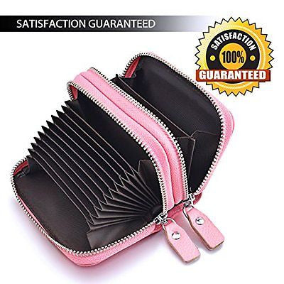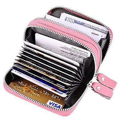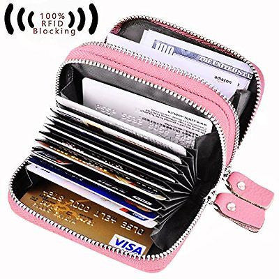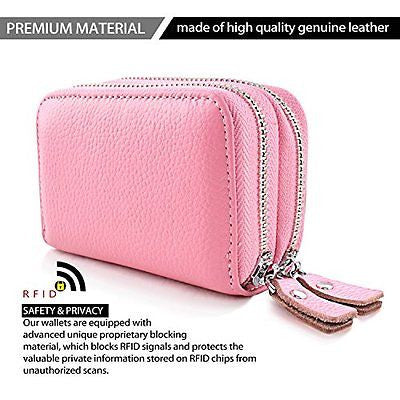 RFID Blocking Genuine Leather Cash Coin Credit Card Holder Wallet For Women Pink