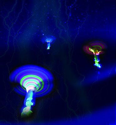 Light up the night with the incredible new Rocket Copters! The amazing light up helicopters can be fired up to 120 feet in the air from the included slingshots to dazzle during the day, or light up the night with their brilliant motions. Just hook and launch, it's fun for kids of all ages. Ages 8+.