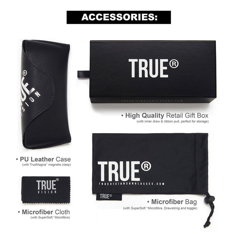 TRUE Original™ - A classic wayfarer style 1950’s retro design combined with contemporary styling and advanced lens technology creating the perfect pair of sunglasses that not only provide anti-glare optics with 100% UV400 polarised protection. Great for thrashing it out on the slopes or equally at home chilling on the beach. Specifications & Features: - Polarized - TrueProtect™ Lenses - Dual Layered Scratch Resistant, Anti-reflective, Coloured & Mirrored for Superior Optical Clarity - UV400 100% UVA/b Protection - Exceeding EN 1836 (CE) & ANSI Z80.3 (FDA) standards - Category 3 (Cat3) - Suitable for driving, snowboarding, skiing, skating & more - Impact Resistant - Our lenses are drop ball impact tested & FDA approved- Comfortable Lightweight Frames - Matte black polycarbonate with a silk finish - Black Anodised Aluminium Hinges - For strength and durability - TRUE Supersoft™ - Microfibre Bag & Cleaning Cloth- PU Leather Case - With TrueMagna™ magnetic clasp. - True Vision Branding - Subtle “TRUE®” Branding on temples - 1 Year Manufacturer's WarrantyDimensions:Lens Width: 52mm (2.05 ins)Lens Height: 42mm (1.65 ins).Bridge Width: 21mm (0.83 ins).Overall Outside Width: 145mm (5.7 ins).Inner Width: 139mm (5.47 ins).Arms Length: 142mm (5.59 ins). Each Premium Pack includes: - Premium Retail Gift Box. - PU Leather Case with TrueMagna™ Magnetic Clasp. - TRUE Supersoft™ Microfibre Bag. - TRUE Supersoft™ Microfibre Cleaning Cloth. - 1 Year Warranty Card - Featuring a 10% discount code for all future purchases. Special Spring Offer Act now to purchase with our introductory offer of 50% discount to our usual retail price, while stock lasts!